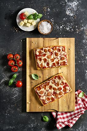 Quadratisch, praktisch, mega-lecker: Die neuen Pizza Squares setzen auf hochwertigen Sauerteig, der beim Backen eine aromatische Kruste und luftige Textur entwickelt. Im praktischen Bake-off-Format sind sie blitzschnell im Ofen oder Konvektomat zubereitet. Ideal als Snack to go oder kleine Mahlzeit.